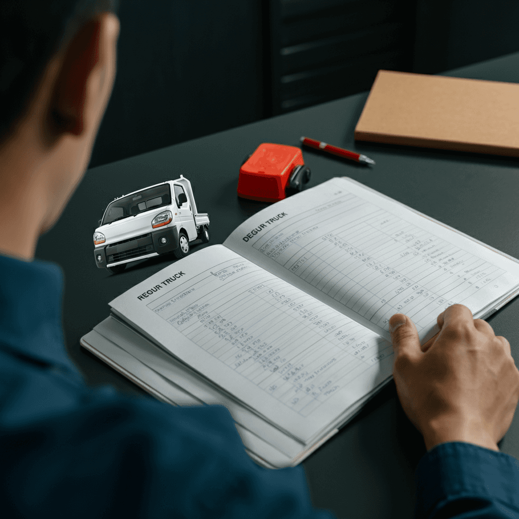 アクティトラックの整備記録簿に定期点検(12ヶ月・24ヶ月)の履歴が全て記載されていれば「管理の行き届いた車」と高評価。特にエンジンオイル交換履歴は重要で+6~9万円の効果。
