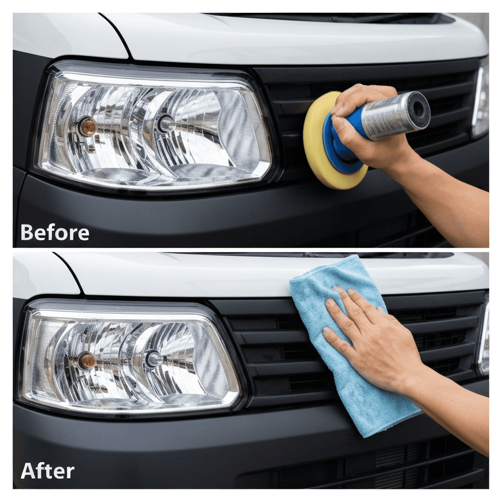 アクティバンはヘッドライトの黄ばみとボディの鉄粉が第一印象を損ねます。研磨+鉄粉除去クリーナー+ワックスで輝きを取り戻せば「程度良好」と判断され+4~7万円の効果。