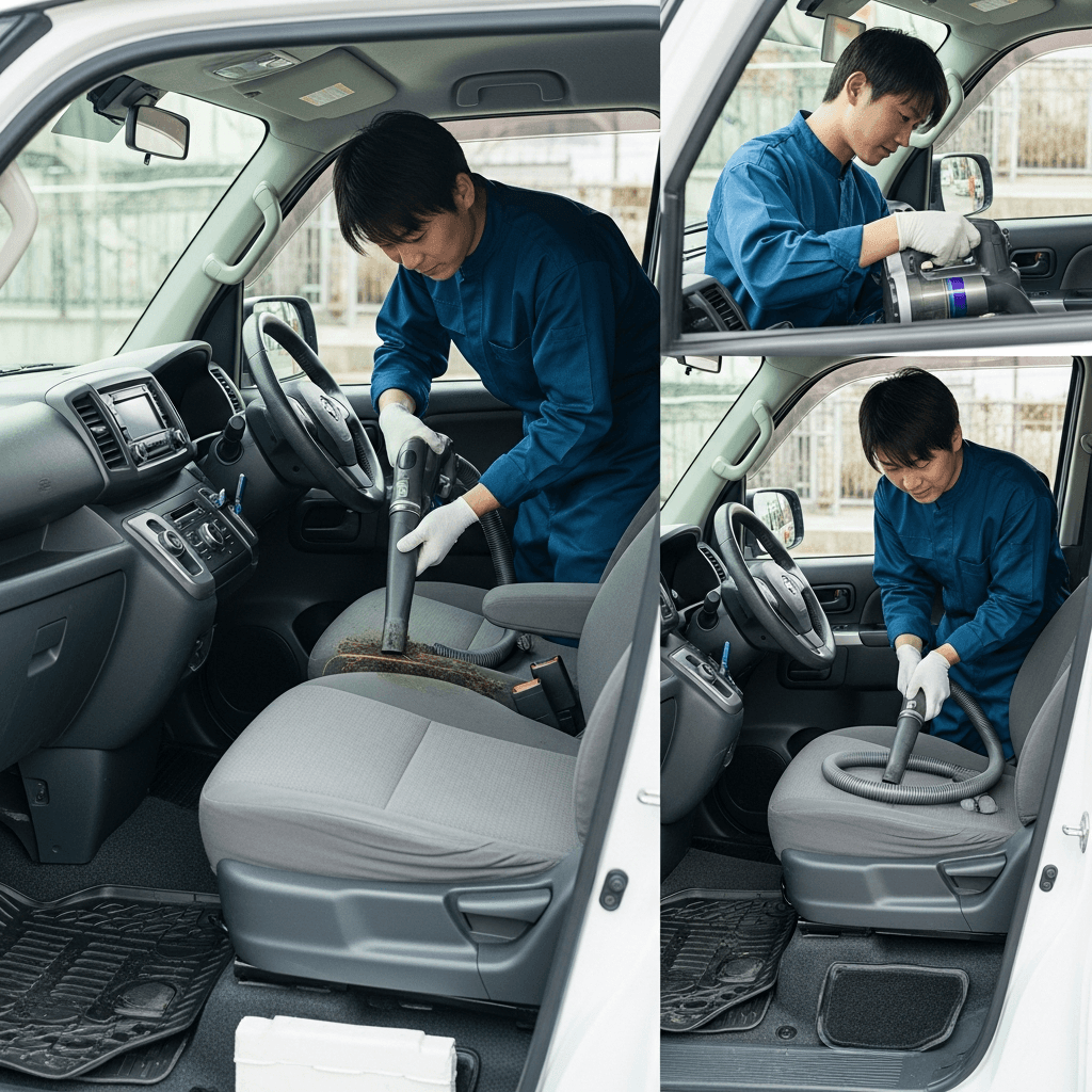 ADバンは第一印象が査定の8割を決めます。シート隙間のゴミ除去、マット洗浄、樹脂パーツ艶出しで新車級の清潔感に。特に臭いゼロなら「禁煙車」扱いで+5~8万円UP。