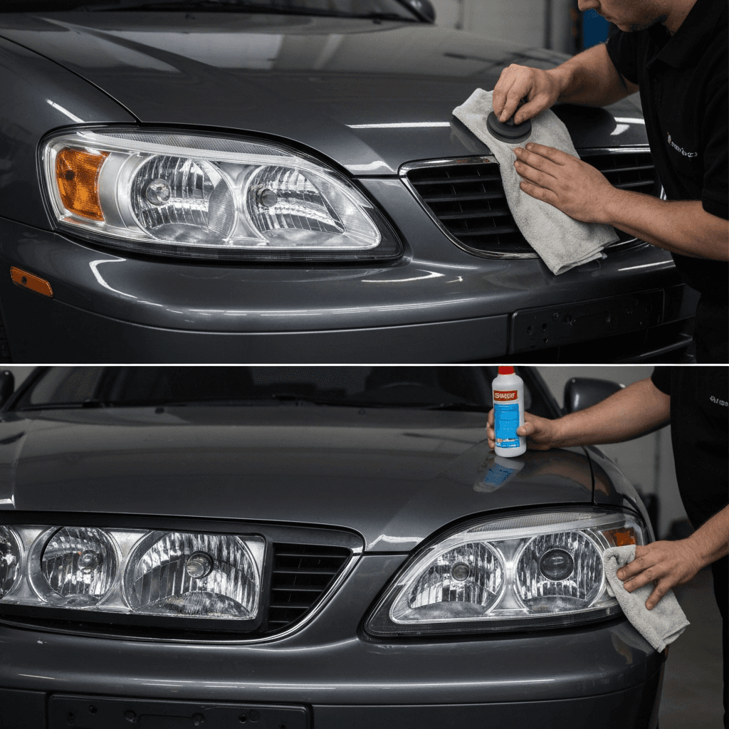 ヘッドライト黄ばみ除去+ボディ鉄粉除去で輝き復活!