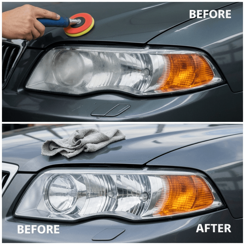 ヘッドライト黄ばみ除去+ボディ鉄粉除去で輝き復活!