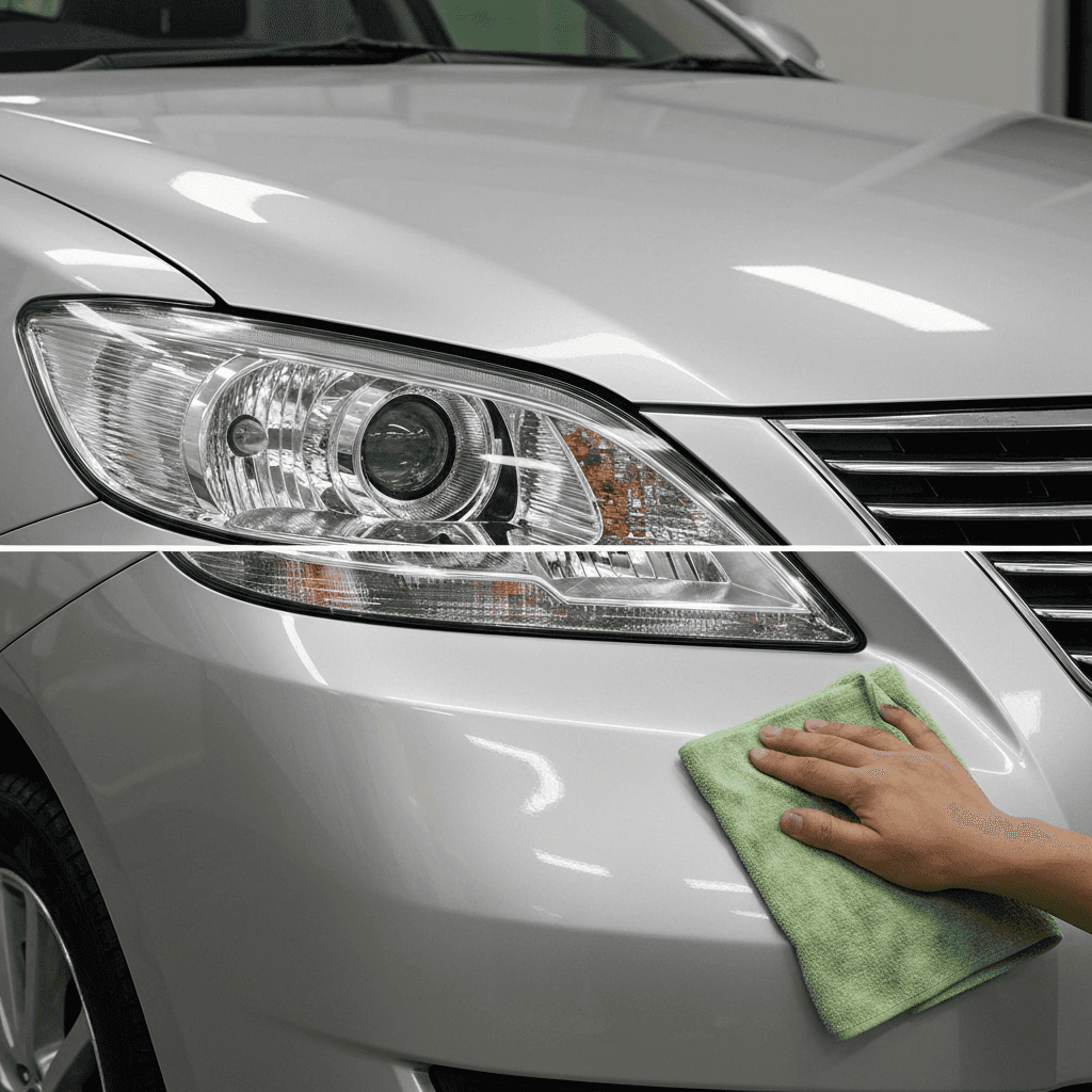 アリオンはヘッドライトの黄ばみとボディの鉄粉が第一印象を損ねます。研磨+鉄粉除去クリーナー+ワックスで輝きを取り戻せば「程度良好」と判断され+4~7万円の効果。