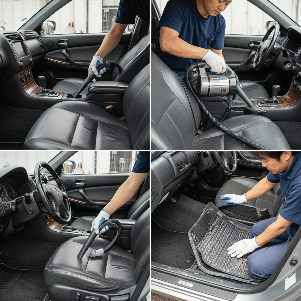 アルテッツァジータは第一印象が査定の8割を決めます。シート隙間のゴミ除去、マット洗浄、樹脂パーツ艶出しで新車級の清潔感に。特に臭いゼロなら「禁煙車」扱いで+5~8万円UP。