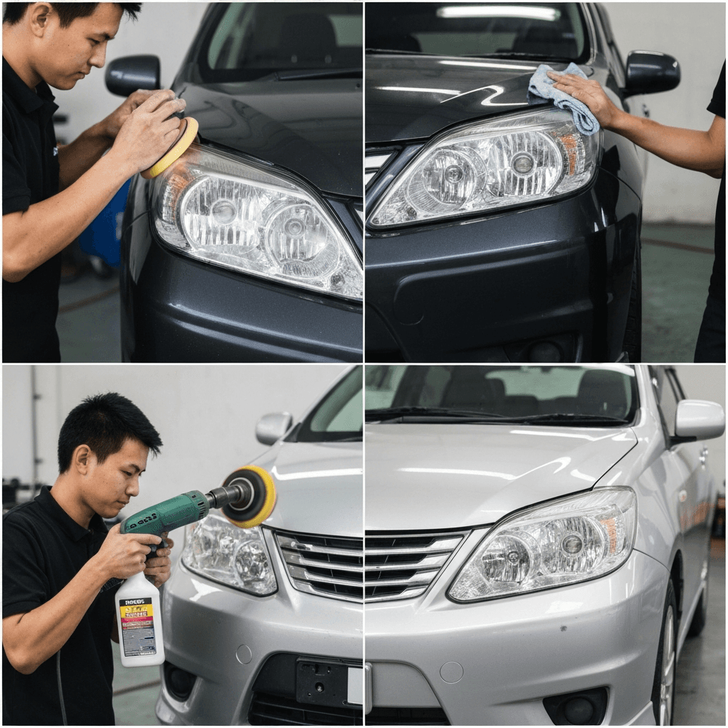 ヘッドライト黄ばみ除去+ボディ鉄粉除去で輝き復活!