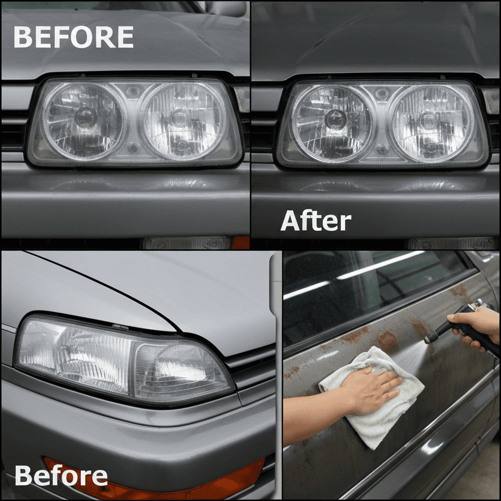 ヘッドライト黄ばみ除去+ボディ鉄粉除去で輝き復活!