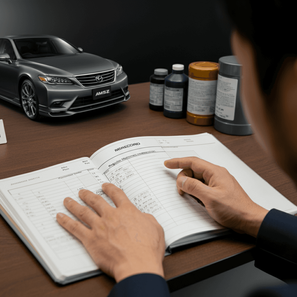 アリストの整備記録簿に定期点検(12ヶ月・24ヶ月)の履歴が全て記載されていれば「管理の行き届いた車」と高評価。特にエンジンオイル交換履歴は重要で+6~9万円の効果。