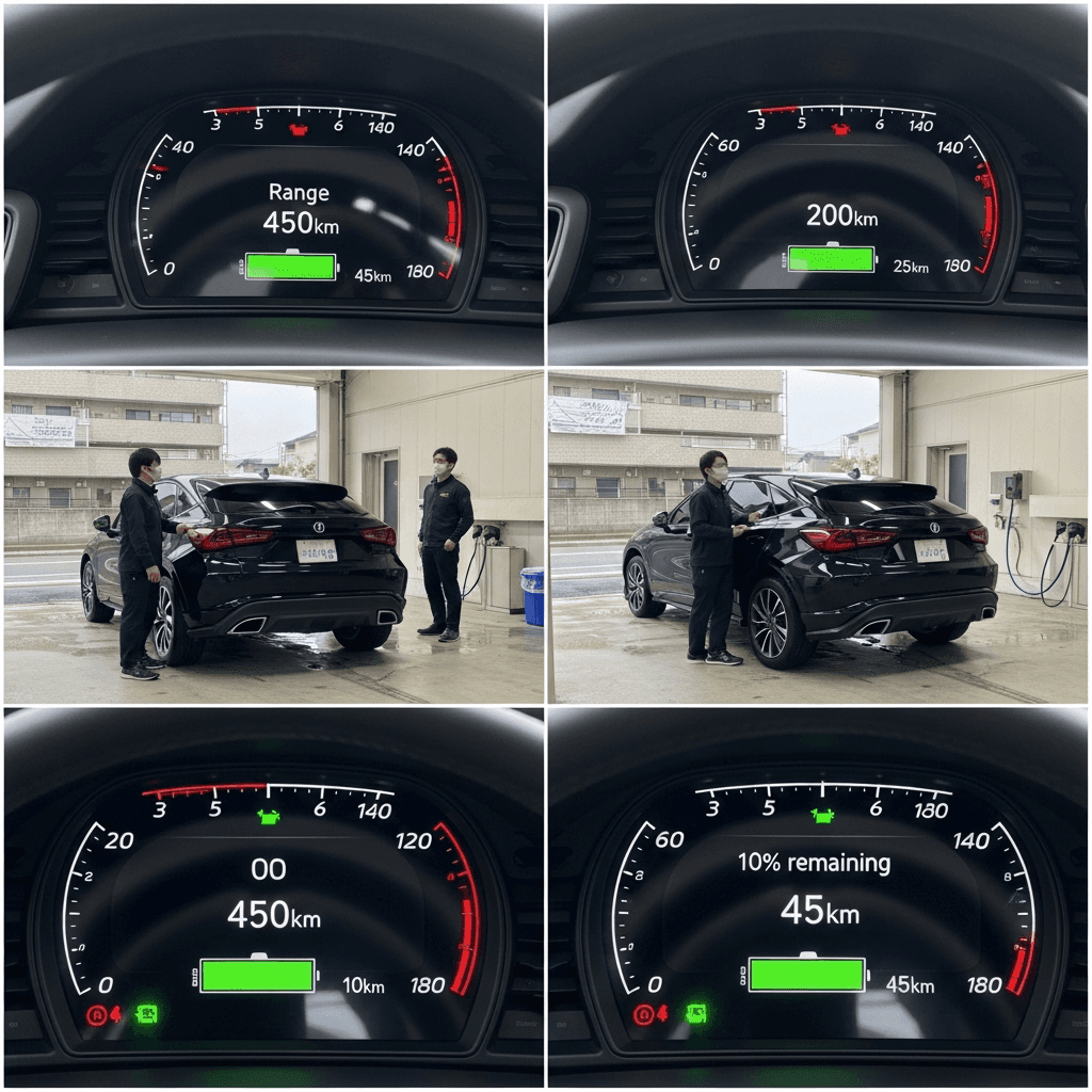 満充電から通常走行→残量10%までの実測データ(写真+メモ)を提示すれば「カタログ値通り」の信頼獲得。航続距離不安が購入障壁のEV車で+5~8万円の効果。