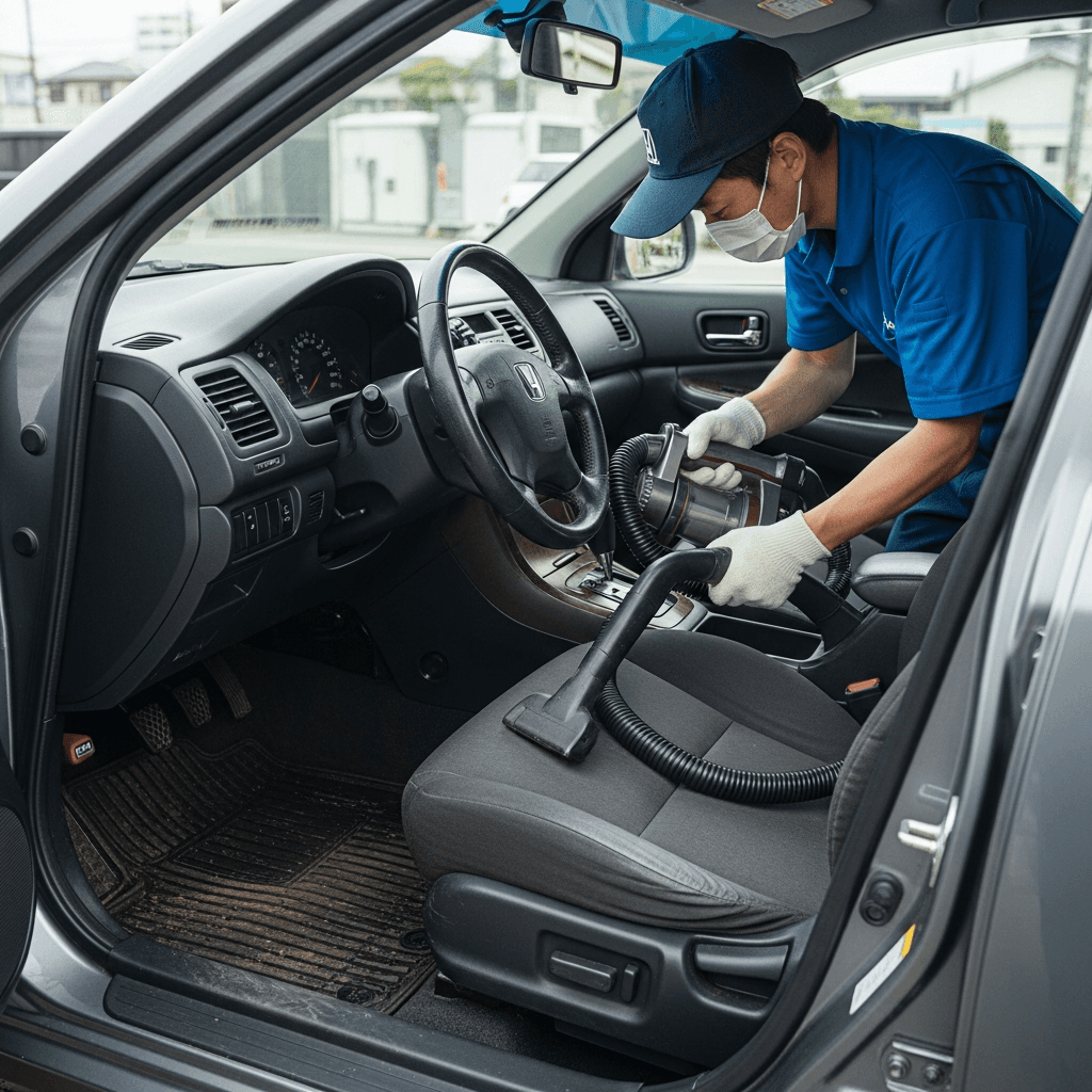 アスコットは第一印象が査定の8割を決めます。シート隙間のゴミ除去、マット洗浄、樹脂パーツ艶出しで新車級の清潔感に。特に臭いゼロなら「禁煙車」扱いで+5~8万円UP。