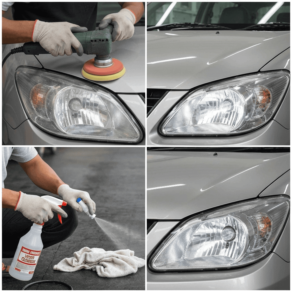 ヘッドライト黄ばみ除去+ボディ鉄粉除去で輝き復活!