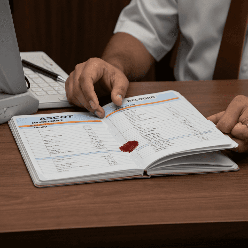アスコットイノーバの整備記録簿に定期点検(12ヶ月・24ヶ月)の履歴が全て記載されていれば「管理の行き届いた車」と高評価。特にエンジンオイル交換履歴は重要で+6~9万円の効果。