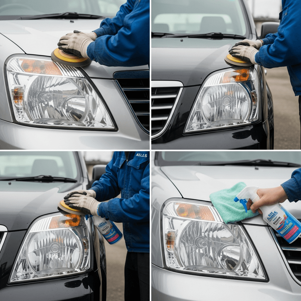 ヘッドライト黄ばみ除去+ボディ鉄粉除去で輝き復活!