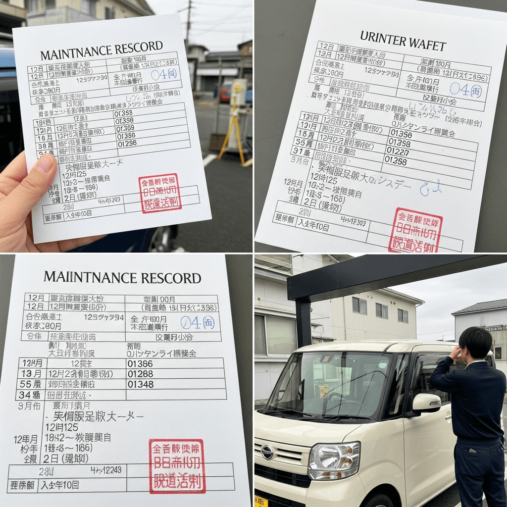 商用車は走行距離が多くても整備履歴が完璧なら高評価。12ヶ月点検を欠かさず実施した記録簿があれば「業務使用でも管理完璧」と評価され+6~10万円の効果。