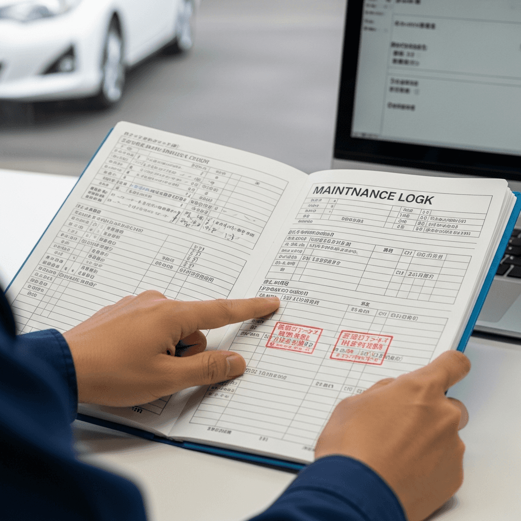 オーリスの整備記録簿に定期点検(12ヶ月・24ヶ月)の履歴が全て記載されていれば「管理の行き届いた車」と高評価。特にエンジンオイル交換履歴は重要で+6~9万円の効果。