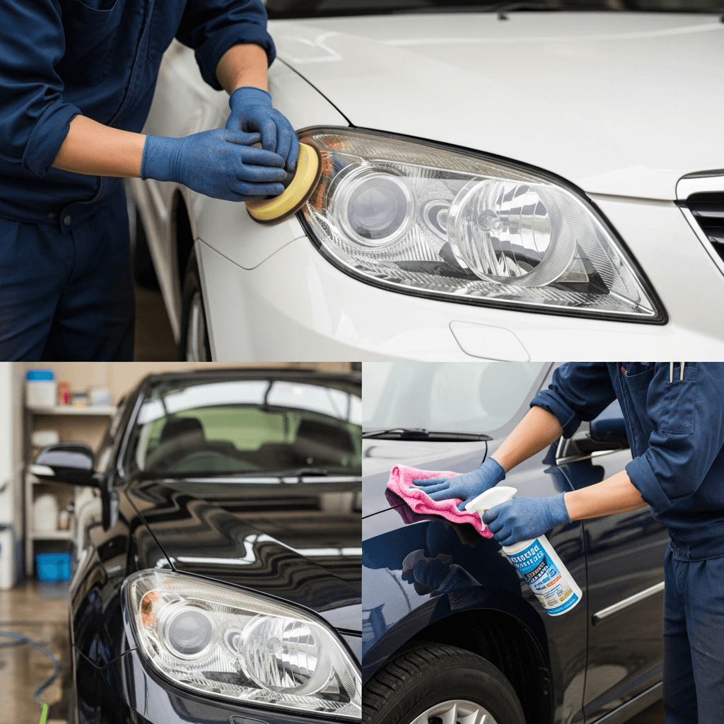 ヘッドライト黄ばみ除去+ボディ鉄粉除去で輝き復活!