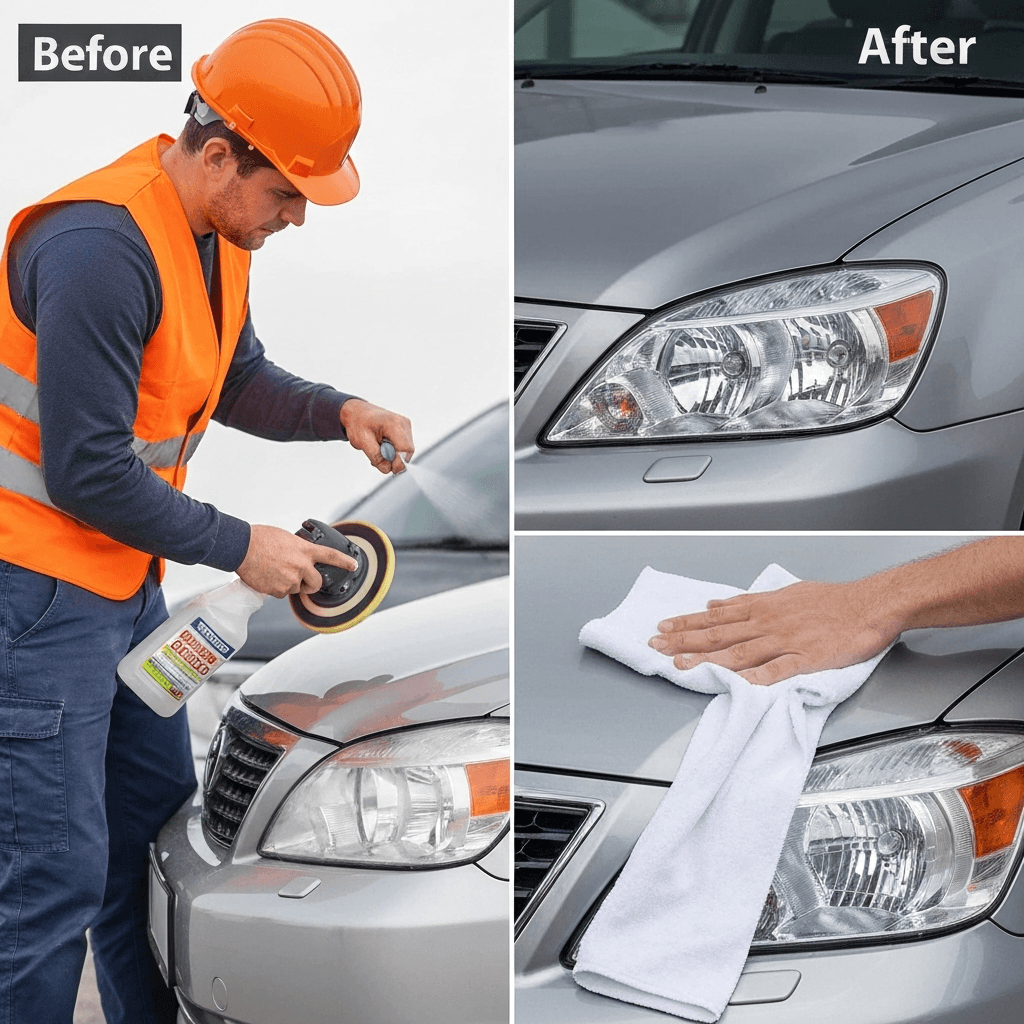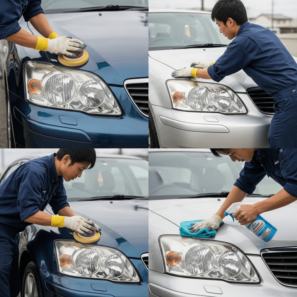 ヘッドライト黄ばみ除去+ボディ鉄粉除去で輝き復活!