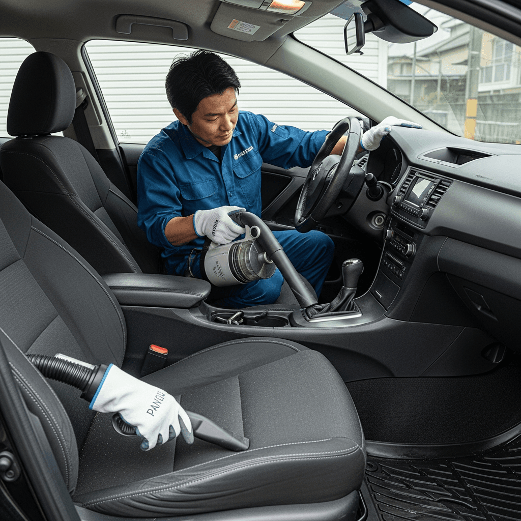アベンシスワゴンは第一印象が査定の8割を決めます。シート隙間のゴミ除去、マット洗浄、樹脂パーツ艶出しで新車級の清潔感に。特に臭いゼロなら「禁煙車」扱いで+5~8万円UP。