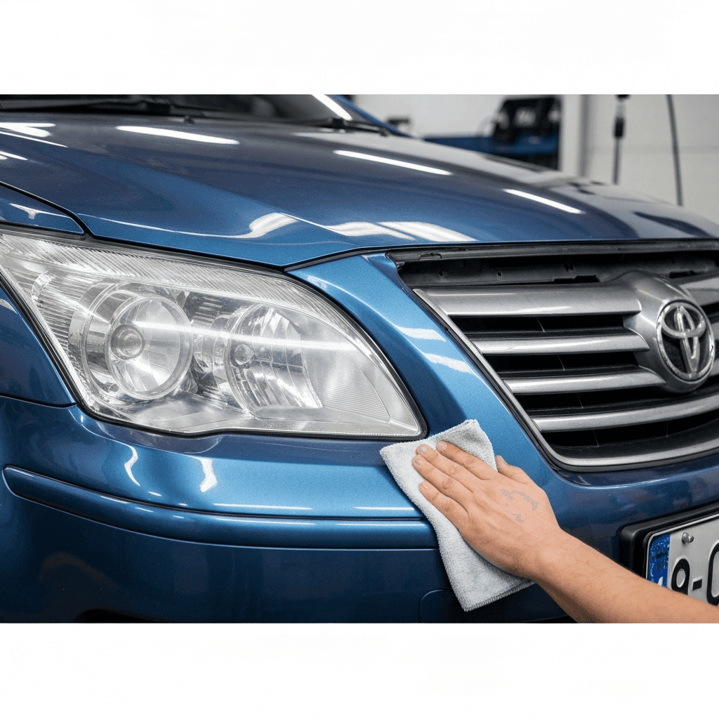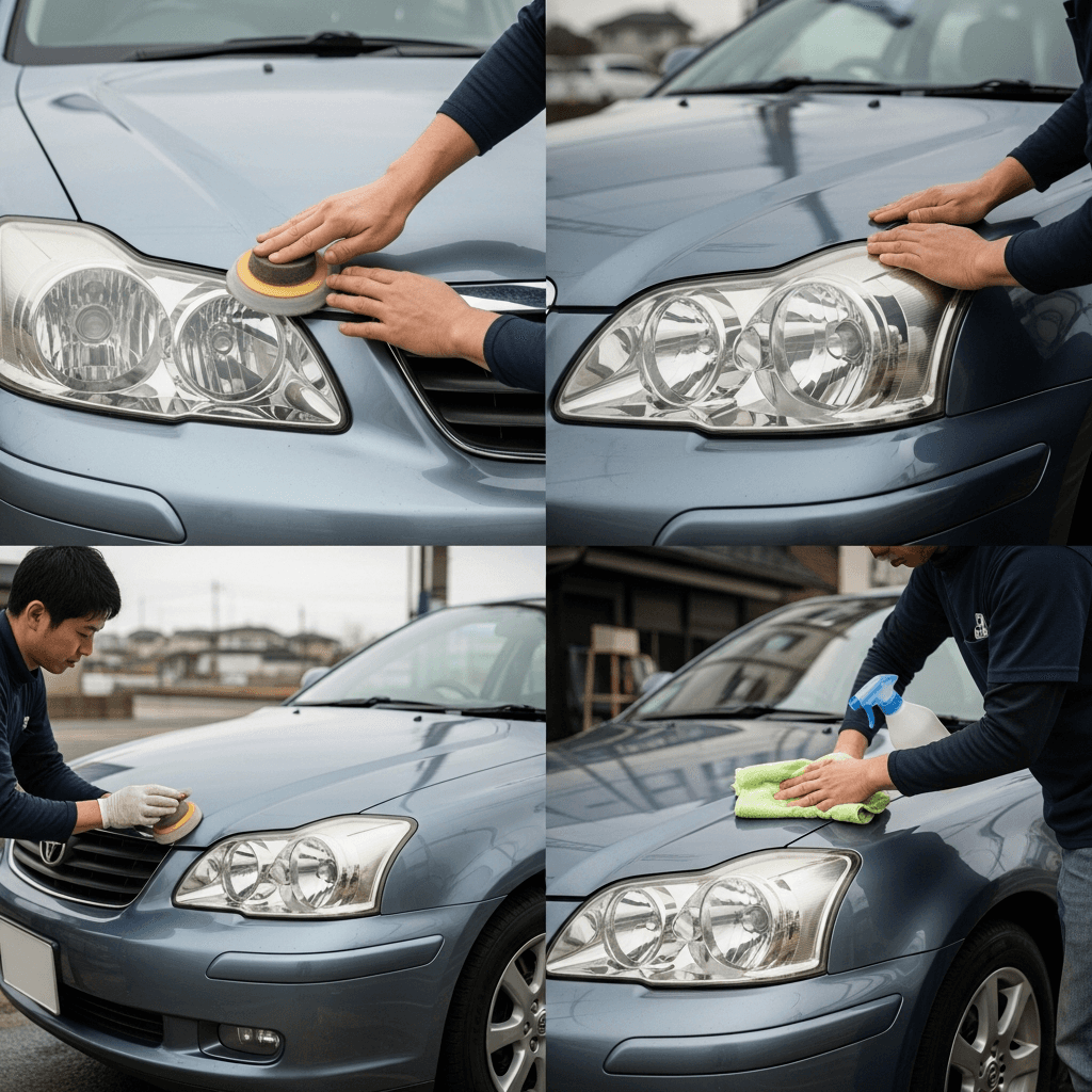 アベンシスワゴンはヘッドライトの黄ばみとボディの鉄粉が第一印象を損ねます。研磨+鉄粉除去クリーナー+ワックスで輝きを取り戻せば「程度良好」と判断され+4~7万円の効果。
