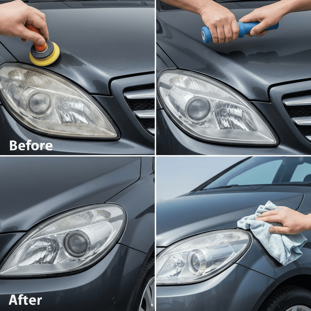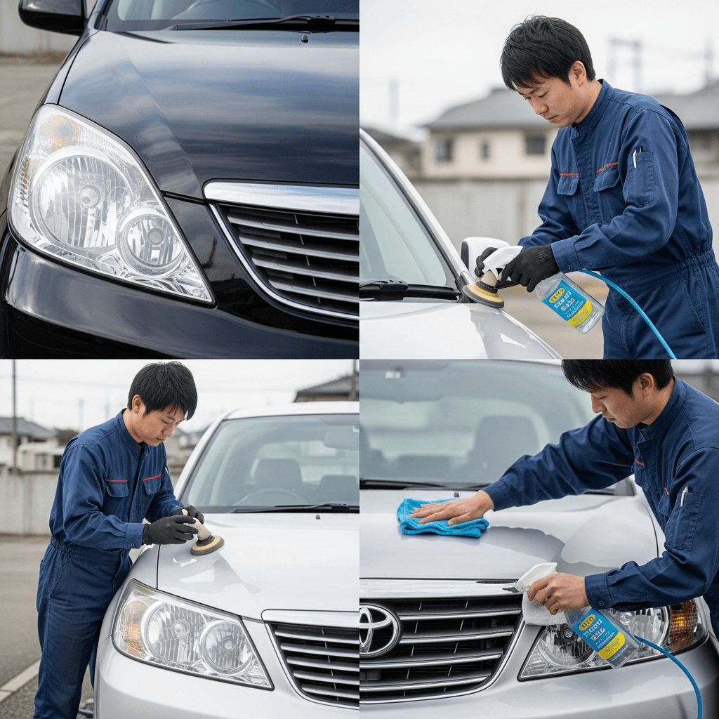 Bクラスはヘッドライトの黄ばみとボディの鉄粉が第一印象を損ねます。研磨+鉄粉除去クリーナー+ワックスで輝きを取り戻せば「程度良好」と判断され+4~7万円の効果。