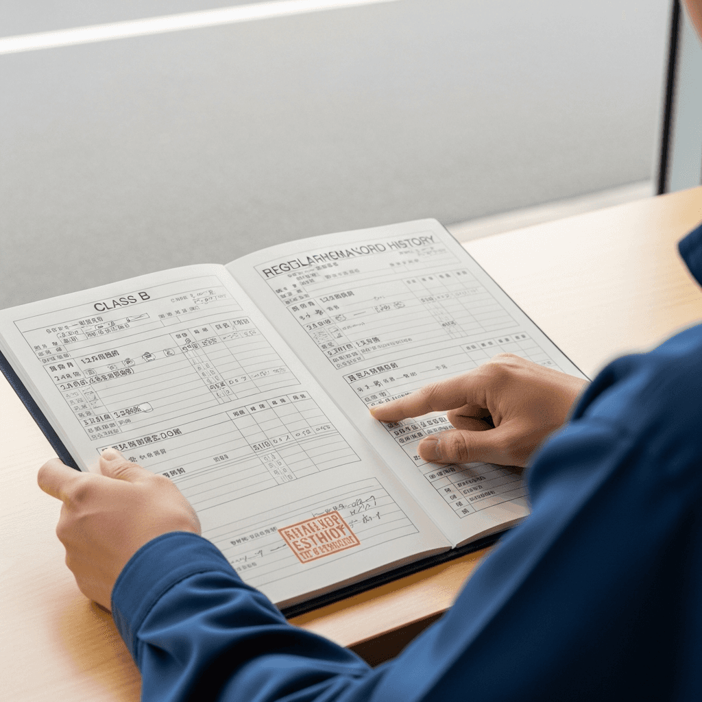 Bクラスの整備記録簿に定期点検(12ヶ月・24ヶ月)の履歴が全て記載されていれば「管理の行き届いた車」と高評価。特にエンジンオイル交換履歴は重要で+6~9万円の効果。