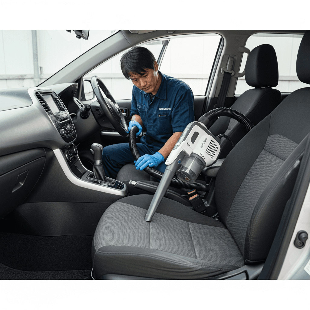 Bクラスは第一印象が査定の8割を決めます。シート隙間のゴミ除去、マット洗浄、樹脂パーツ艶出しで新車級の清潔感に。特に臭いゼロなら「禁煙車」扱いで+5~8万円UP。