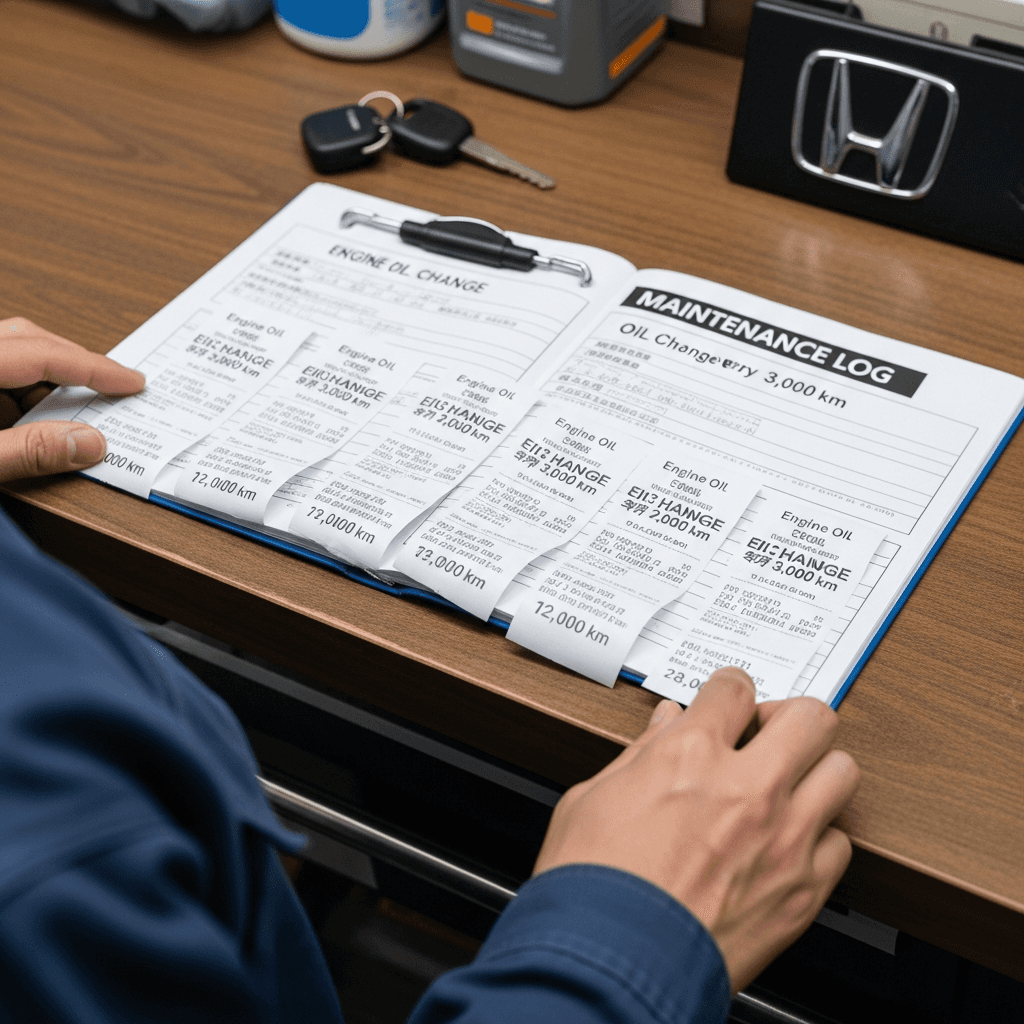 エンジンオイル交換3,000km毎の証明書で信頼獲得!