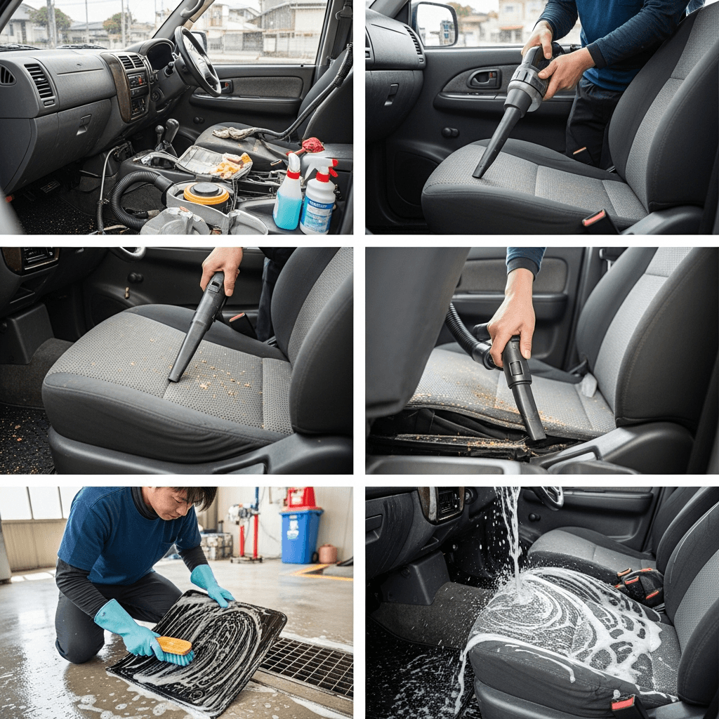 ビッグホーンは第一印象が査定の8割を決めます。シート隙間のゴミ除去、マット洗浄、樹脂パーツ艶出しで新車級の清潔感に。特に臭いゼロなら「禁煙車」扱いで+5~8万円UP。
