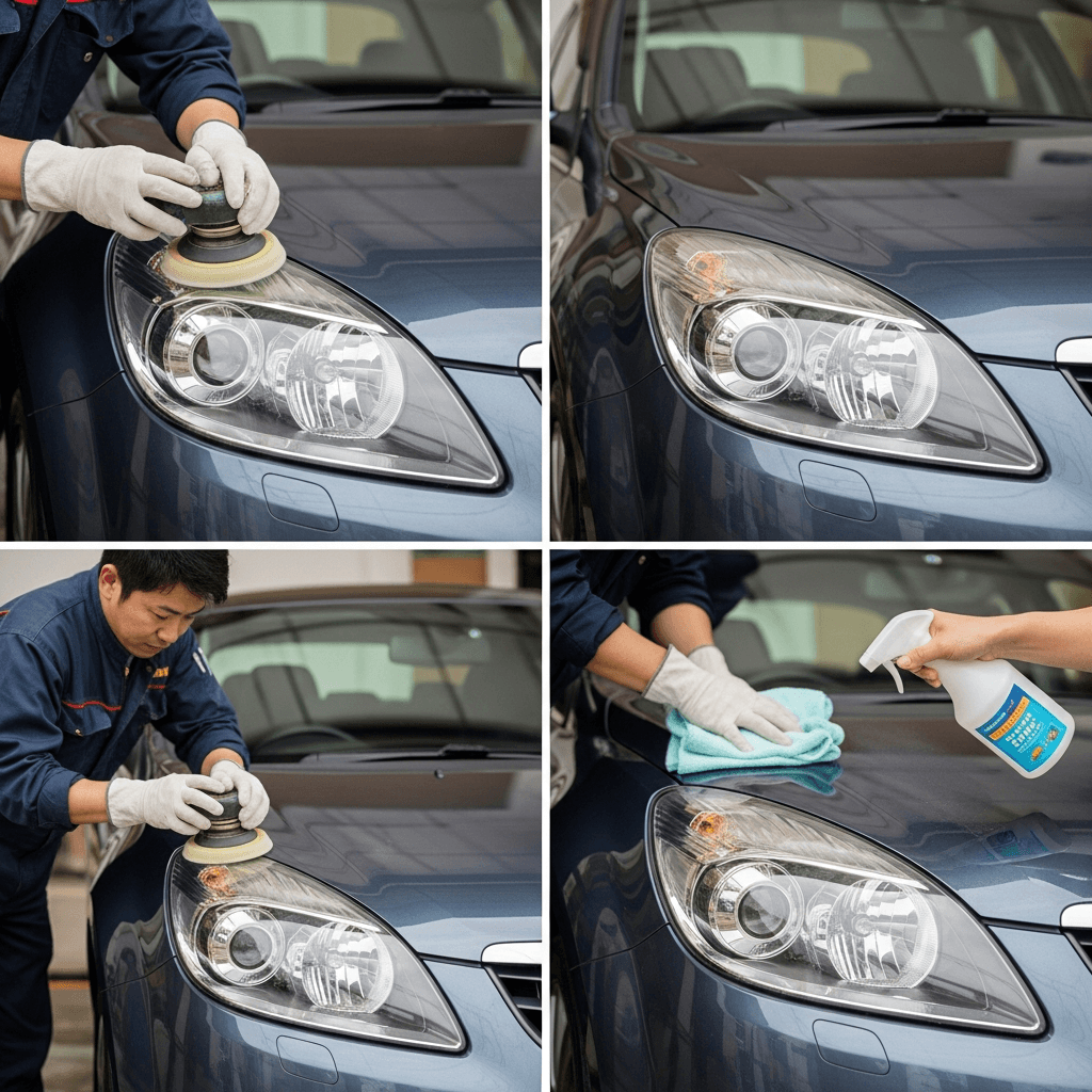 ヘッドライト黄ばみ除去+ボディ鉄粉除去で輝き復活!