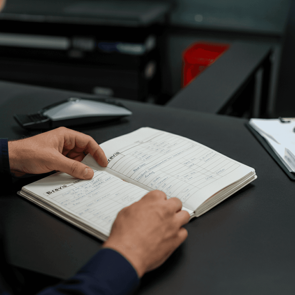 ブレビスの整備記録簿に定期点検(12ヶ月・24ヶ月)の履歴が全て記載されていれば「管理の行き届いた車」と高評価。特にエンジンオイル交換履歴は重要で+6~9万円の効果。
