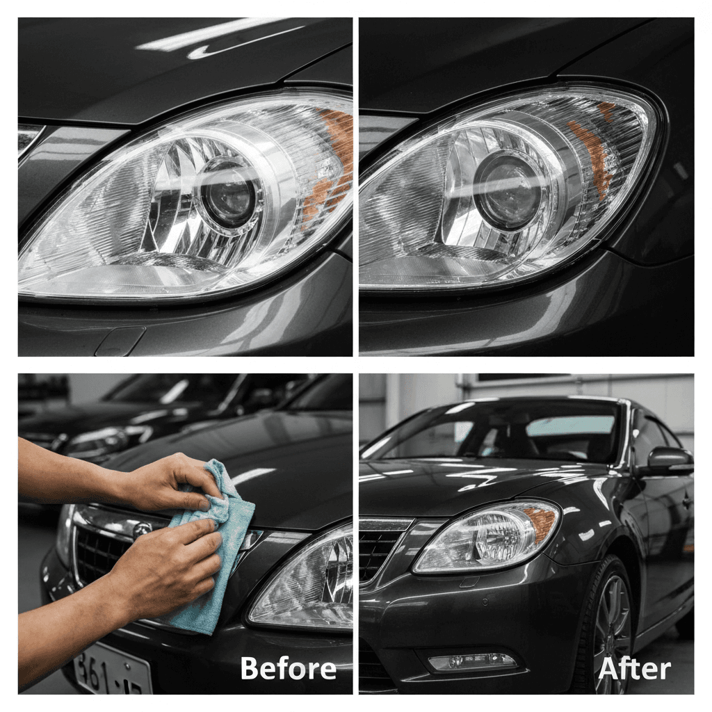ヘッドライト黄ばみ除去+ボディ鉄粉除去で輝き復活!