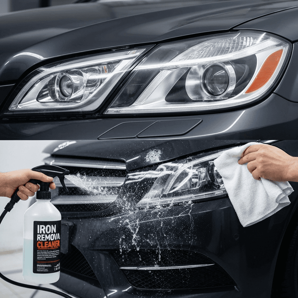 Cクラスはヘッドライトの黄ばみとボディの鉄粉が第一印象を損ねます。研磨+鉄粉除去クリーナー+ワックスで輝きを取り戻せば「程度良好」と判断され+4~7万円の効果。