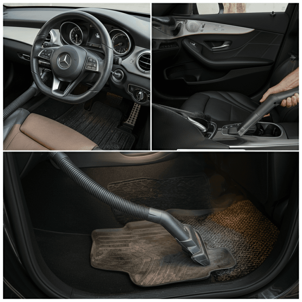 Cクラスは第一印象が査定の8割を決めます。シート隙間のゴミ除去、マット洗浄、樹脂パーツ艶出しで新車級の清潔感に。特に臭いゼロなら「禁煙車」扱いで+5~8万円UP。