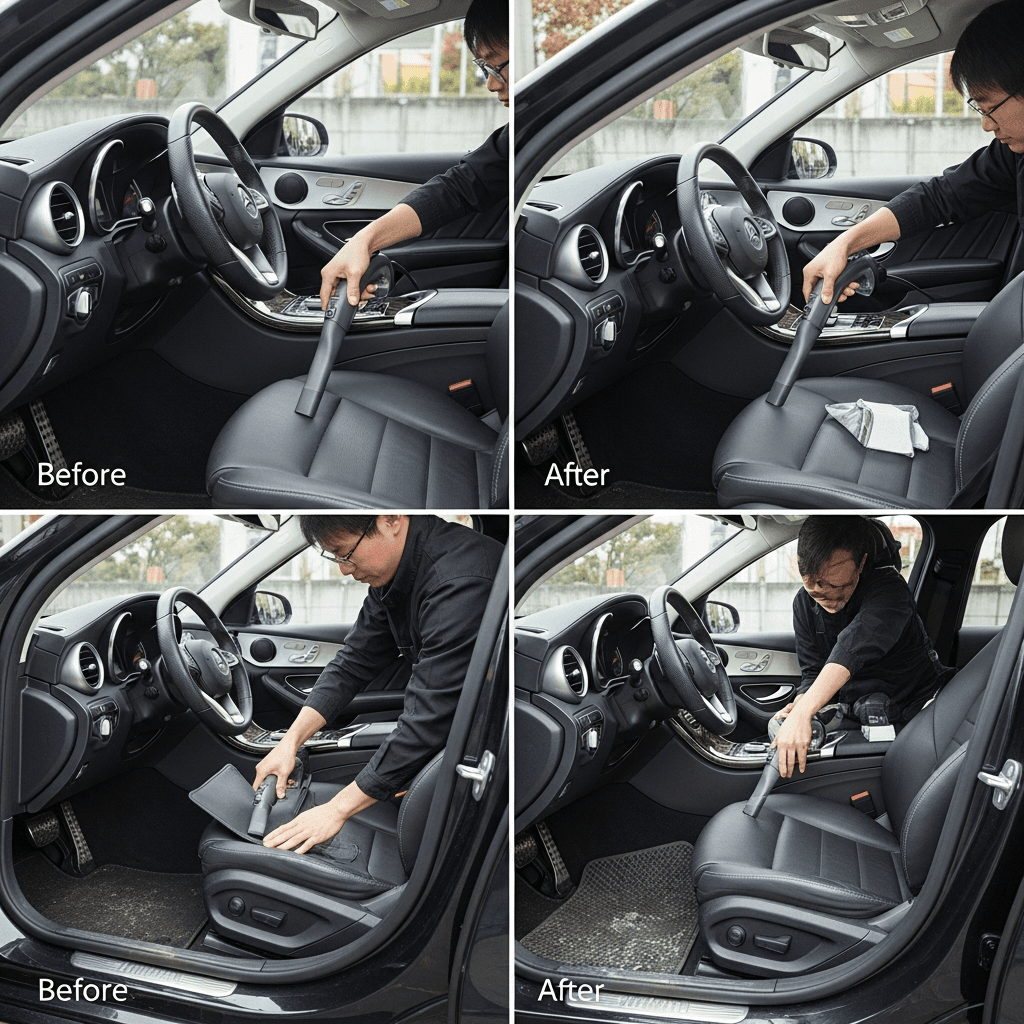 Cクラスオールテレインは第一印象が査定の8割を決めます。シート隙間のゴミ除去、マット洗浄、樹脂パーツ艶出しで新車級の清潔感に。特に臭いゼロなら「禁煙車」扱いで+5~8万円UP。