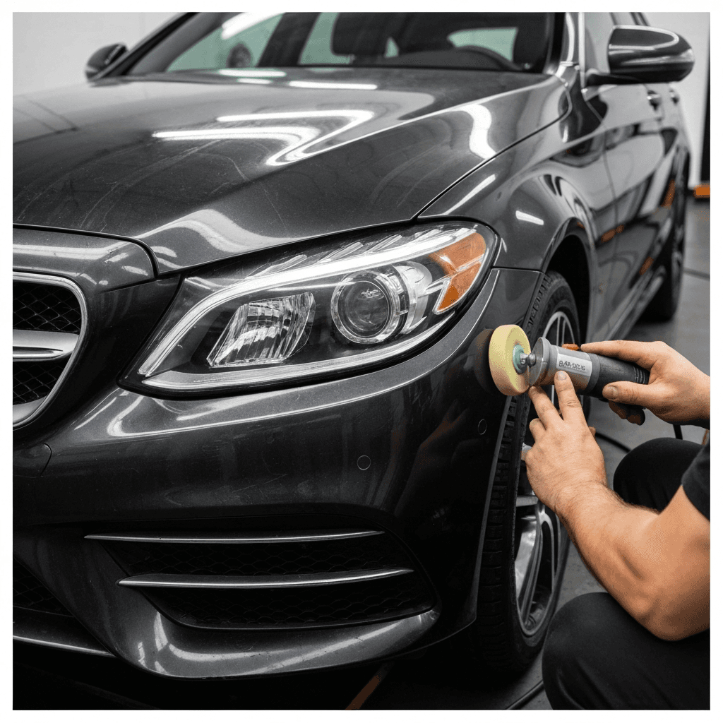Cクラスワゴンはヘッドライトの黄ばみとボディの鉄粉が第一印象を損ねます。研磨+鉄粉除去クリーナー+ワックスで輝きを取り戻せば「程度良好」と判断され+4~7万円の効果。