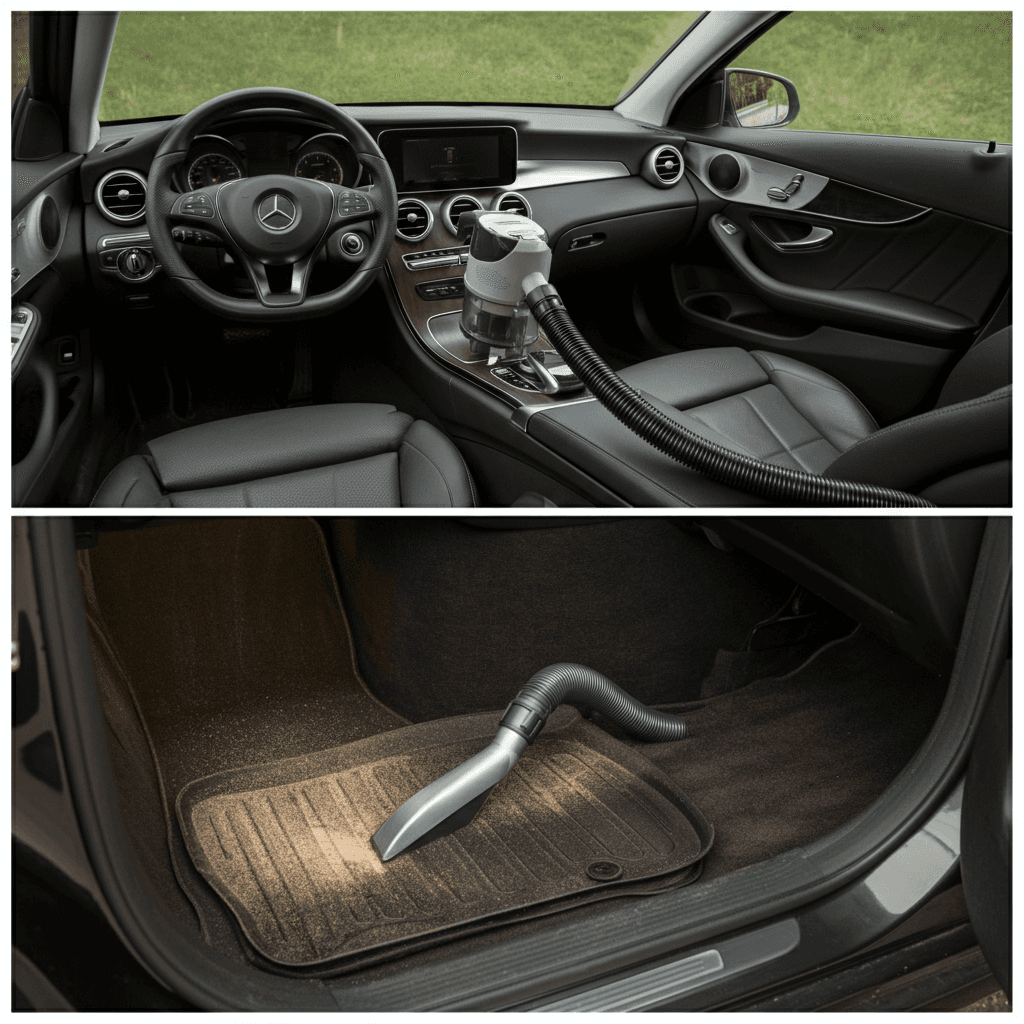 Cクラスワゴンは第一印象が査定の8割を決めます。シート隙間のゴミ除去、マット洗浄、樹脂パーツ艶出しで新車級の清潔感に。特に臭いゼロなら「禁煙車」扱いで+5~8万円UP。