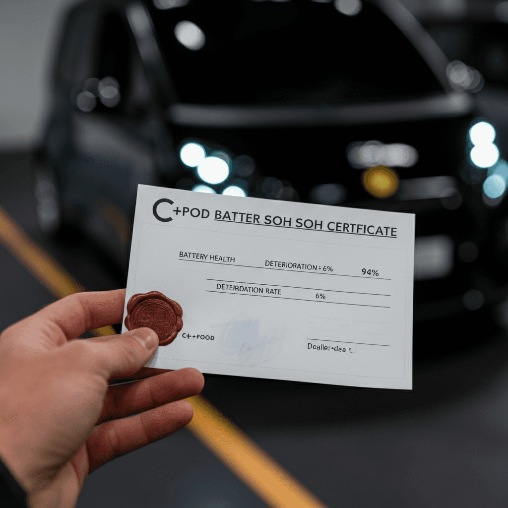 ディーラーでSOH診断(約5,000円)を受け「90%以上」の証明を。バッテリー不安払拭で+10万円以上UP。