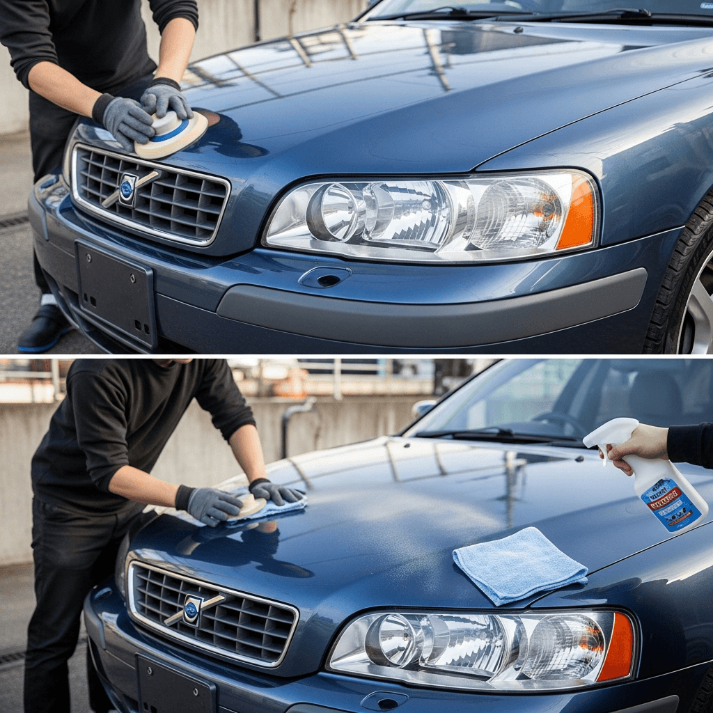 C70はヘッドライトの黄ばみとボディの鉄粉が第一印象を損ねます。研磨+鉄粉除去クリーナー+ワックスで輝きを取り戻せば「程度良好」と判断され+4~7万円の効果。