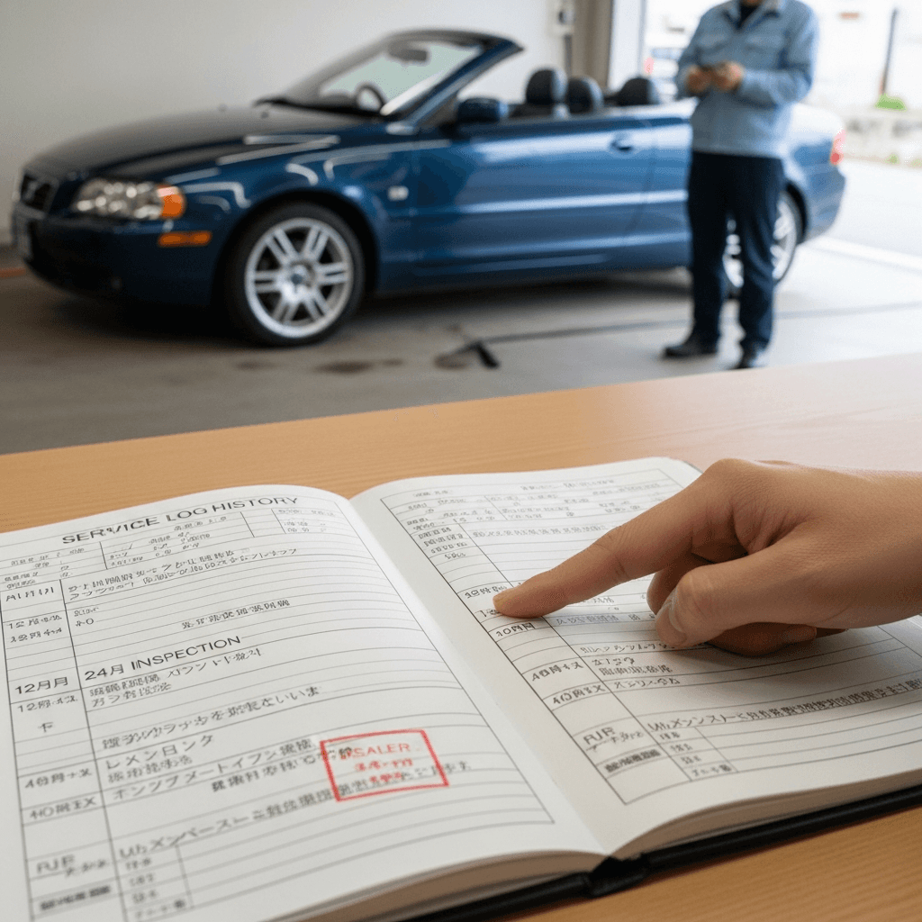 C70カブリオレの整備記録簿に定期点検(12ヶ月・24ヶ月)の履歴が全て記載されていれば「管理の行き届いた車」と高評価。特にエンジンオイル交換履歴は重要で+6~9万円の効果。