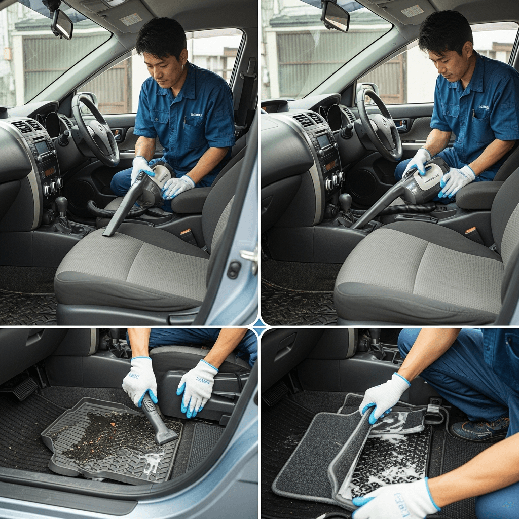 カルディナは第一印象が査定の8割を決めます。シート隙間のゴミ除去、マット洗浄、樹脂パーツ艶出しで新車級の清潔感に。特に臭いゼロなら「禁煙車」扱いで+5~8万円UP。