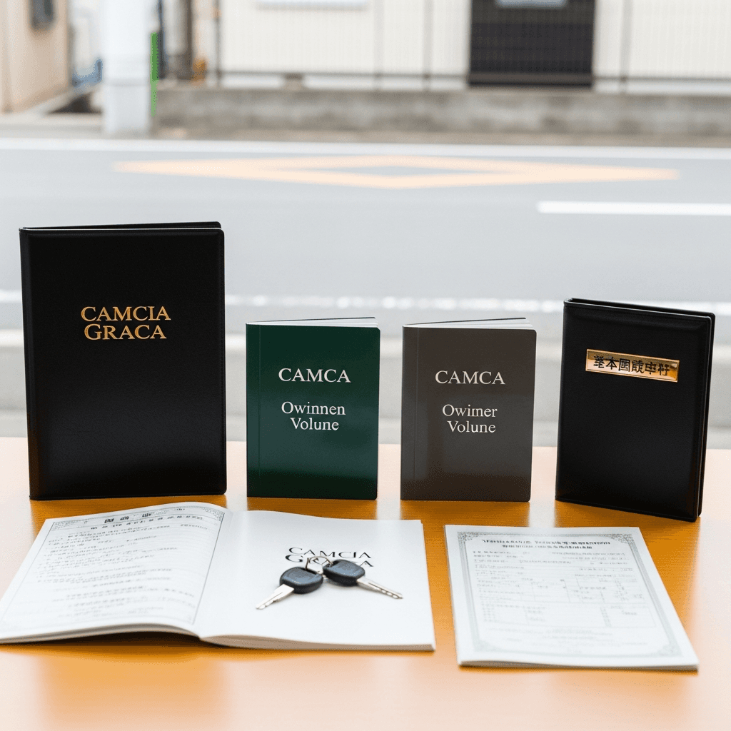 カムリグラシアは高級セダンとして書類完備が必須。整備記録簿、取扱説明書、スペアキー2本が揃っていれば「ワンオーナー級の管理」で+4~7万円UP。特にスペアキーは重要。