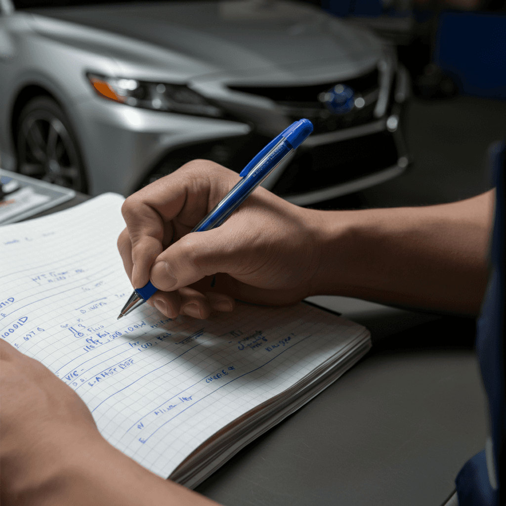 整備記録簿にCVTフルード交換やHVシステム診断の履歴を明記。特に「10万km時CVT交換済」「バッテリー冷却系点検済」の記載があれば査定士の信頼度が急上昇し、+6~10万円の価値創出が可能です。