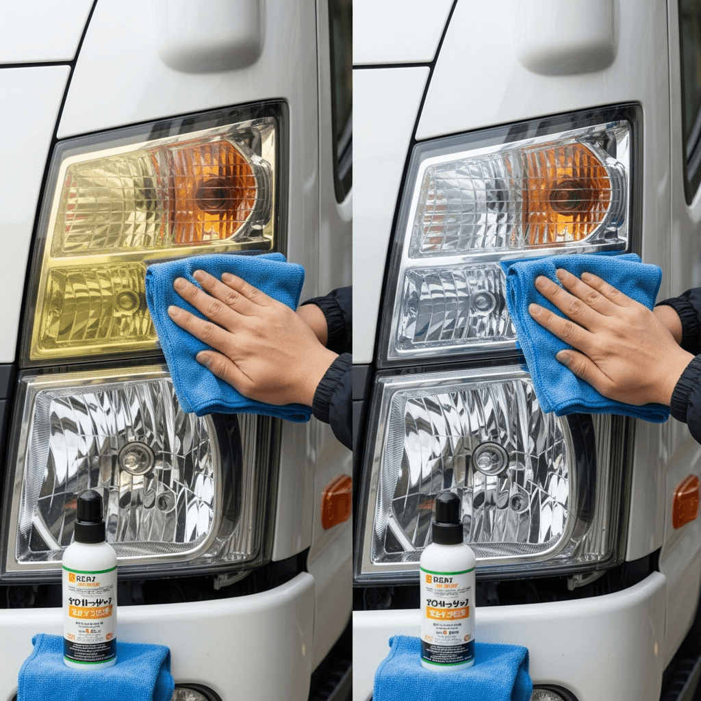 ヘッドライト黄ばみ除去で新車の輝きを取り戻す!