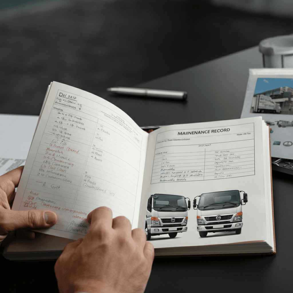 キャンターガッツの整備記録簿に定期点検(12ヶ月・24ヶ月)の履歴が全て記載されていれば「管理の行き届いた車」と高評価。特にエンジンオイル交換履歴は重要で+6~9万円の効果。