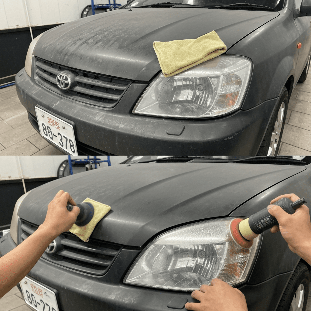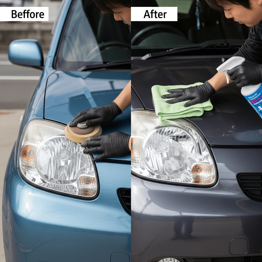 ヘッドライト黄ばみ除去+ボディ鉄粉除去で輝き復活!