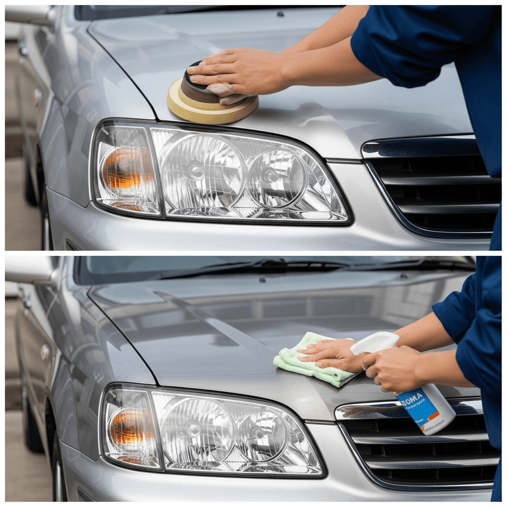 カペラワゴンはヘッドライトの黄ばみとボディの鉄粉が第一印象を損ねます。研磨+鉄粉除去クリーナー+ワックスで輝きを取り戻せば「程度良好」と判断され+4~7万円の効果。