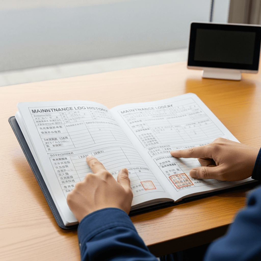 カペラワゴンの整備記録簿に定期点検(12ヶ月・24ヶ月)の履歴が全て記載されていれば「管理の行き届いた車」と高評価。特にエンジンオイル交換履歴は重要で+6~9万円の効果。
