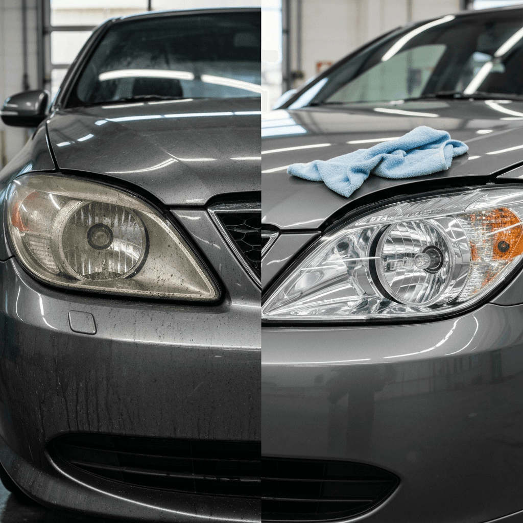 ヘッドライト黄ばみ除去+ボディ鉄粉除去で輝き復活!