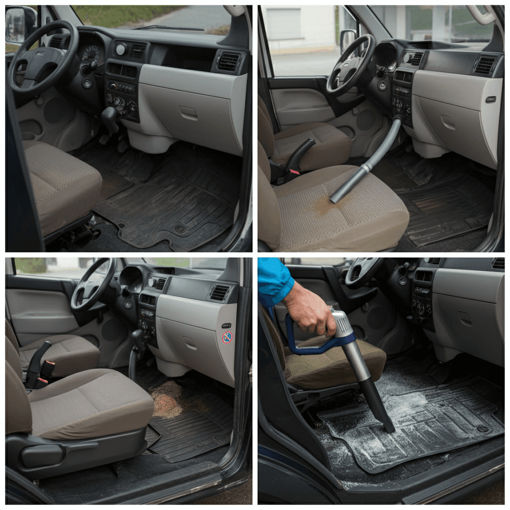 キャリイは第一印象が査定の8割を決めます。シート隙間のゴミ除去、マット洗浄、樹脂パーツ艶出しで新車級の清潔感に。特に臭いゼロなら「禁煙車」扱いで+5~8万円UP。
