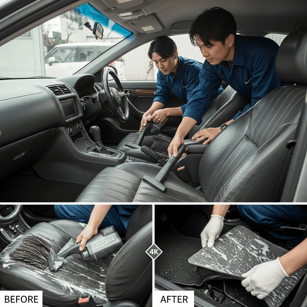 キャバリエクーペは第一印象が査定の8割を決めます。シート隙間のゴミ除去、マット洗浄、樹脂パーツ艶出しで新車級の清潔感に。特に臭いゼロなら「禁煙車」扱いで+5~8万円UP。