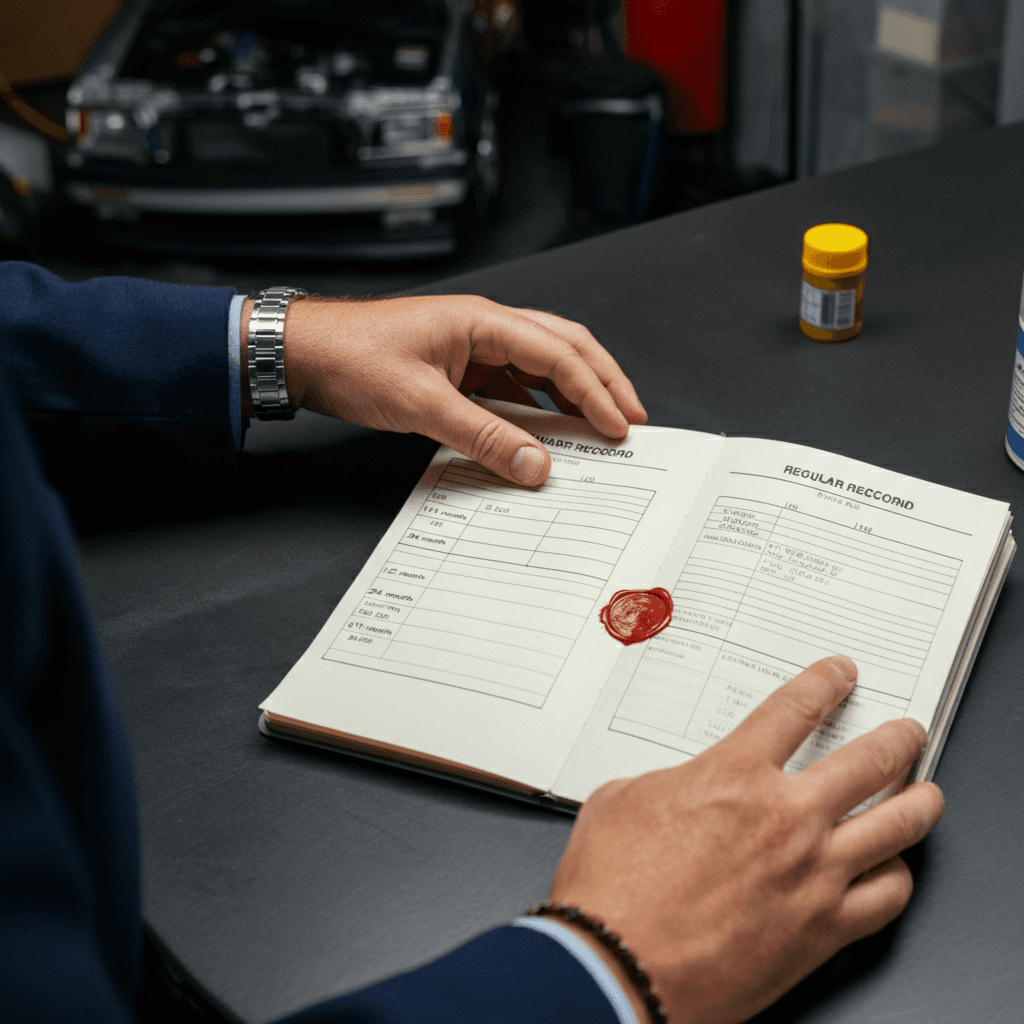 キャバリエクーペの整備記録簿に定期点検(12ヶ月・24ヶ月)の履歴が全て記載されていれば「管理の行き届いた車」と高評価。特にエンジンオイル交換履歴は重要で+6~9万円の効果。