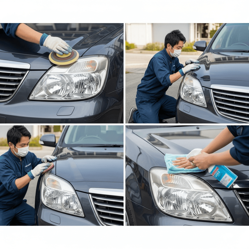 ヘッドライト黄ばみ除去+ボディ鉄粉除去で輝き復活!